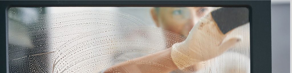 Spray the cleaner onto cooled glass, leave it to work for a few minutes and then wipe off with a damp cloth or paper towel. Our cleaners are designed to remove soot and grease easily without damaging the glass surface.