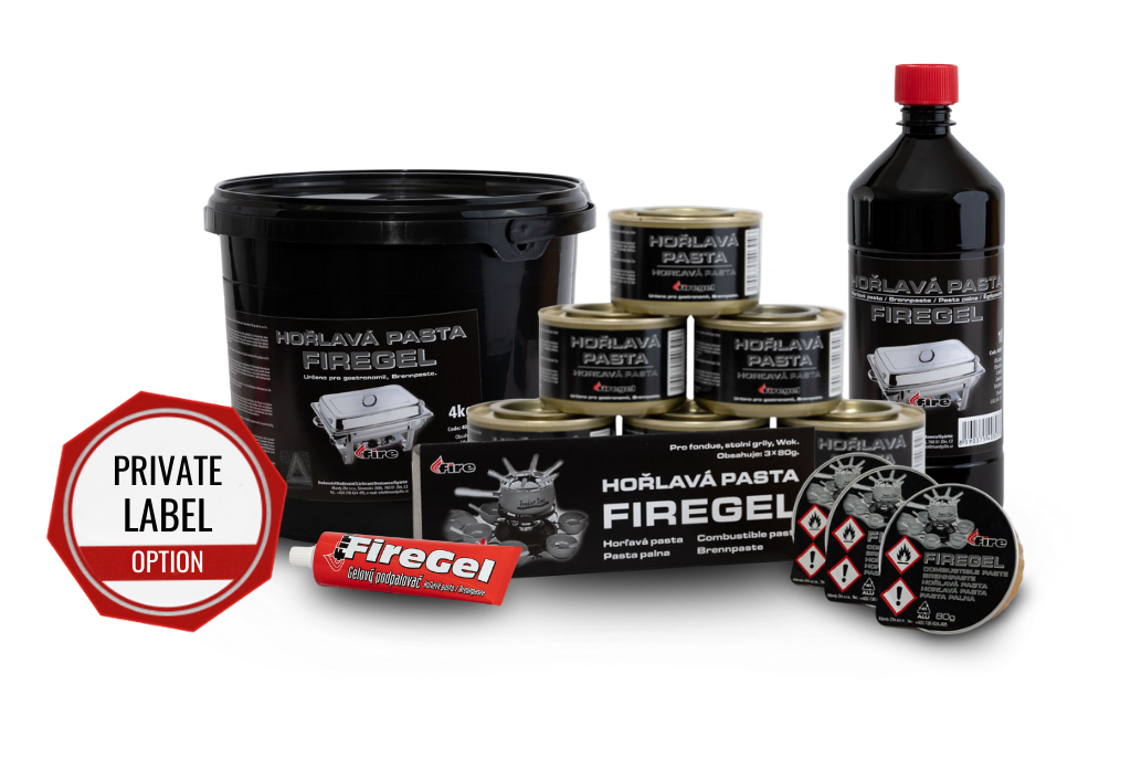 Production takes place under carefully controlled conditions, where the individual components are thoroughly mixed to create a homogeneous, viscous mixture with optimal properties. The resulting fuel paste is suitable for use in gastronomy, households and on the go, as it burns with a clean blue flame, does not produce soot or unpleasant odor, and does not contaminate cookware.